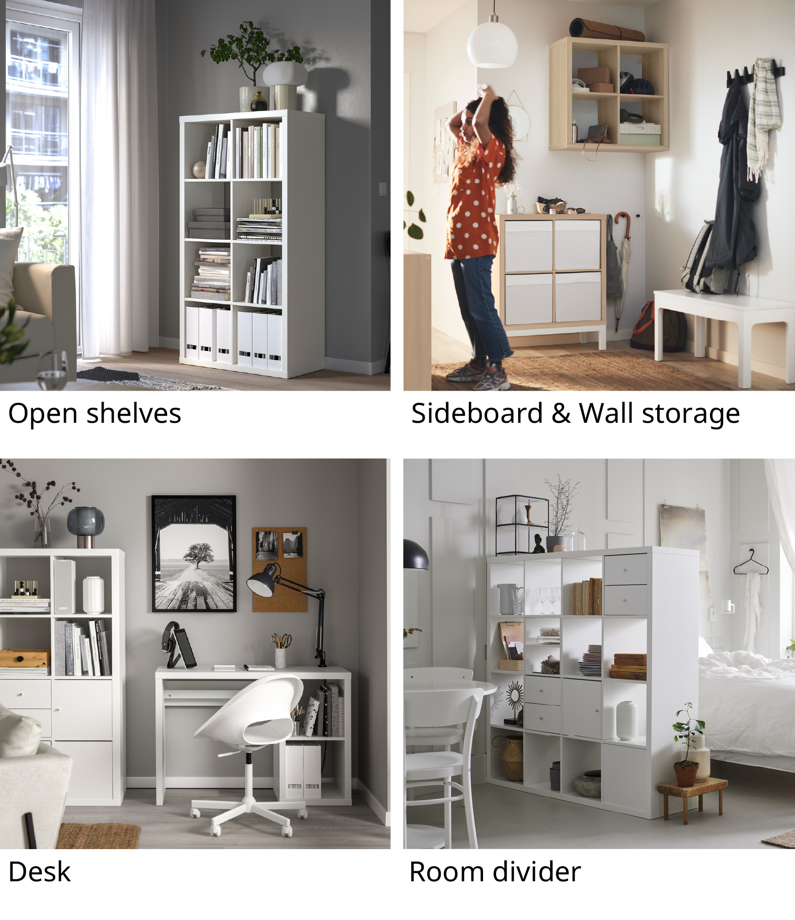 Use our online planner to combine units, inserts, and doors to build a KALLAX solution that's perfect for your style and your stuff.