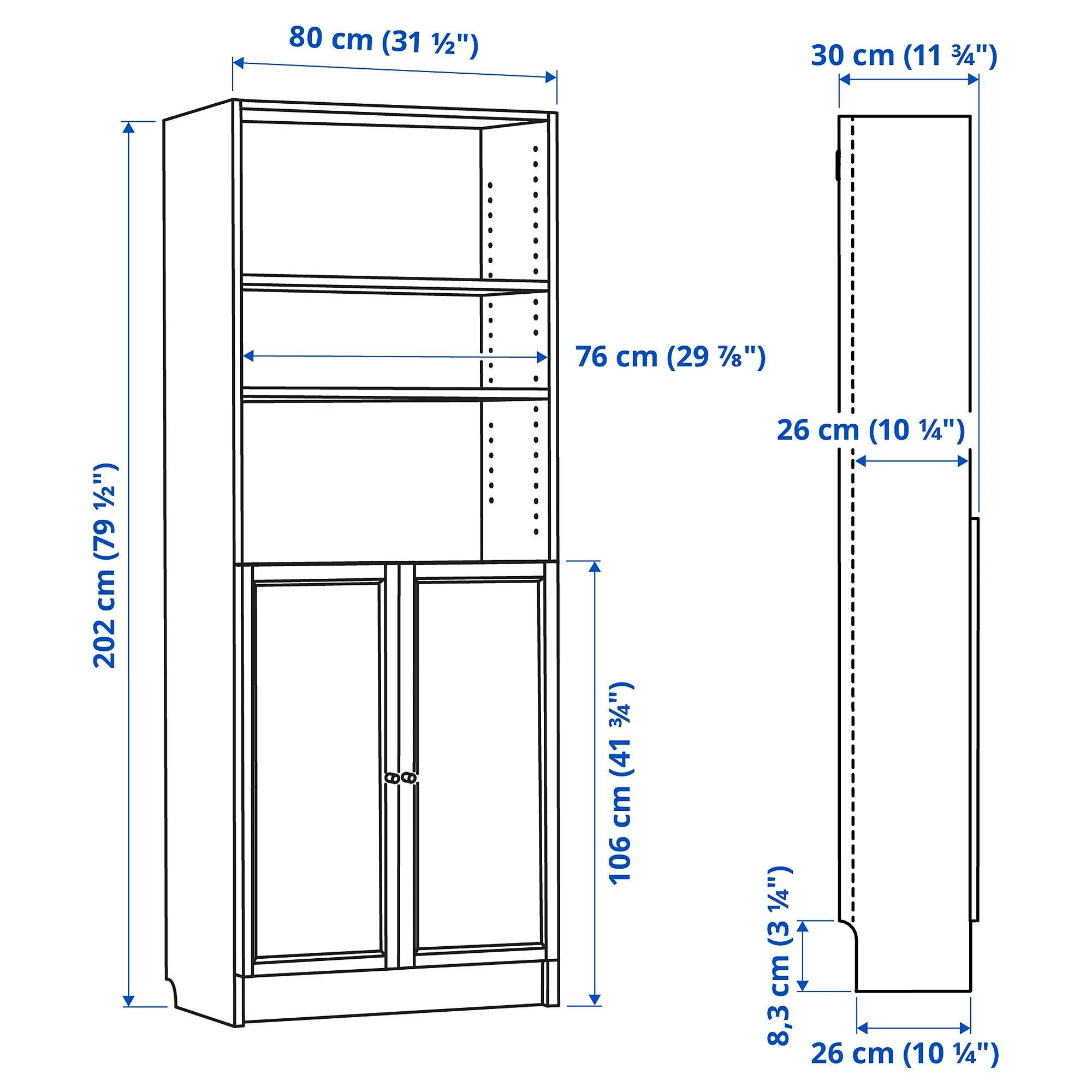 The shallow and adjustable shelves help you customise your BILLY and allow you to use it as you like – for storing everyday items, memorabilia or other things you collect.