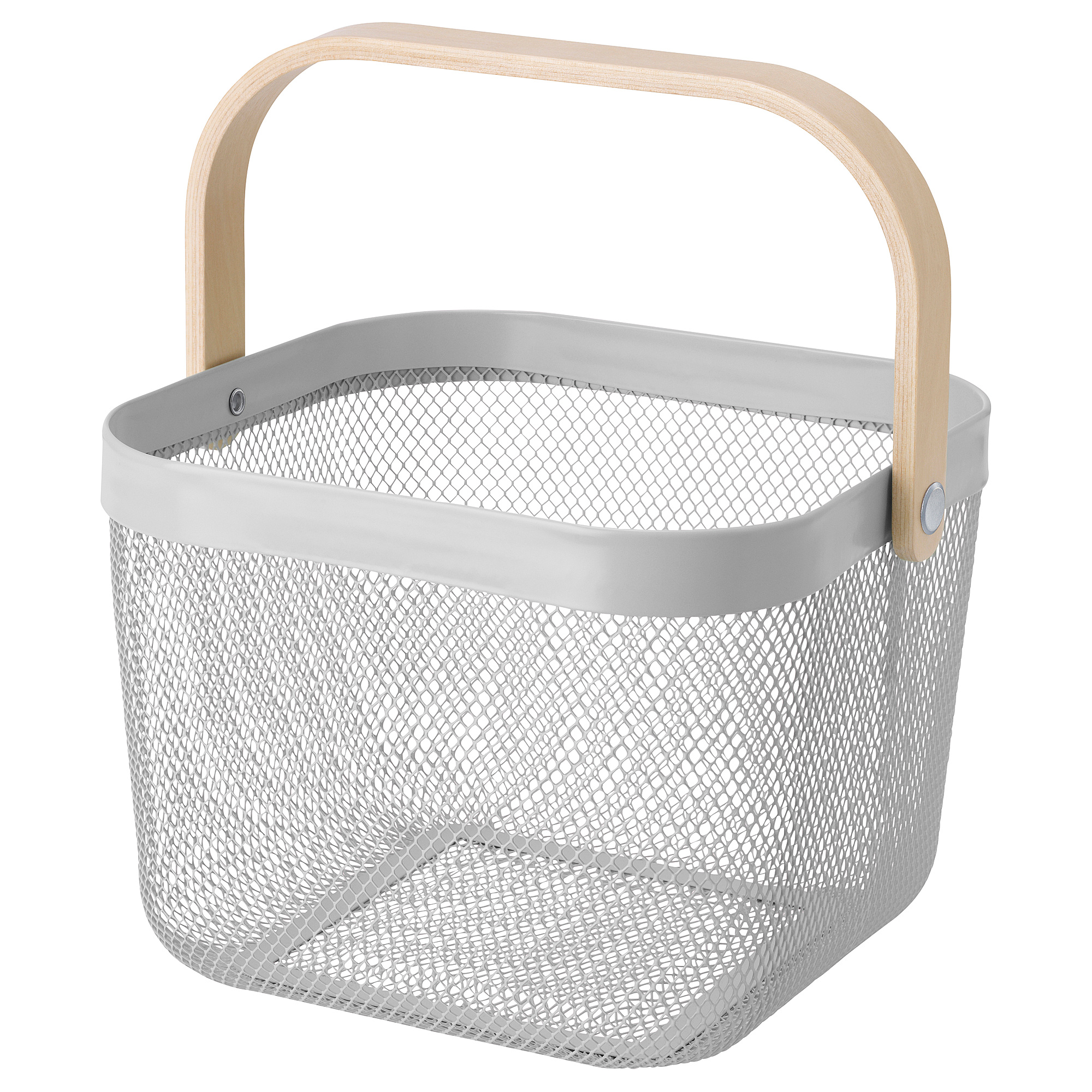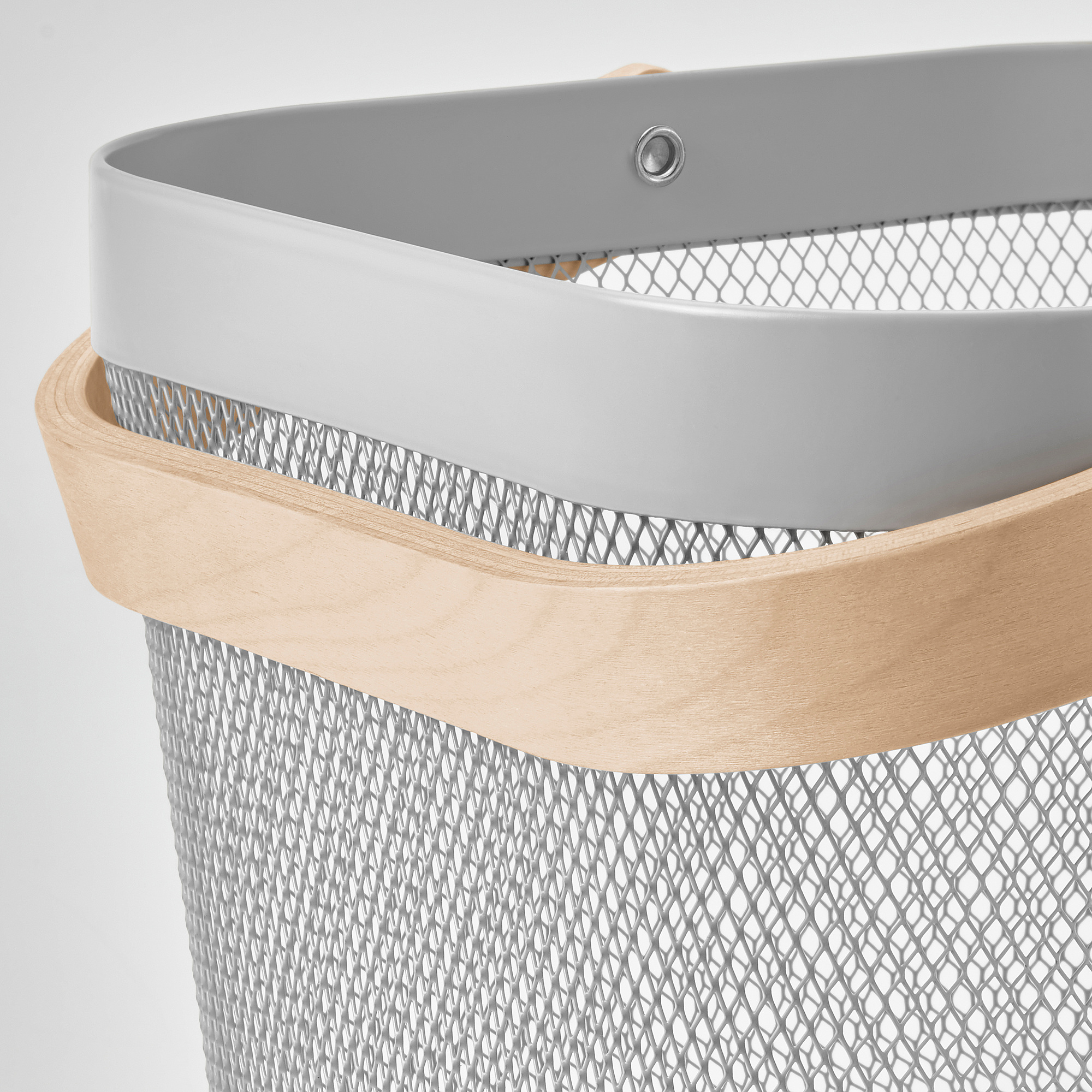 You can see the contents through the mesh and the basket takes up little vertical space when you lower the handles.