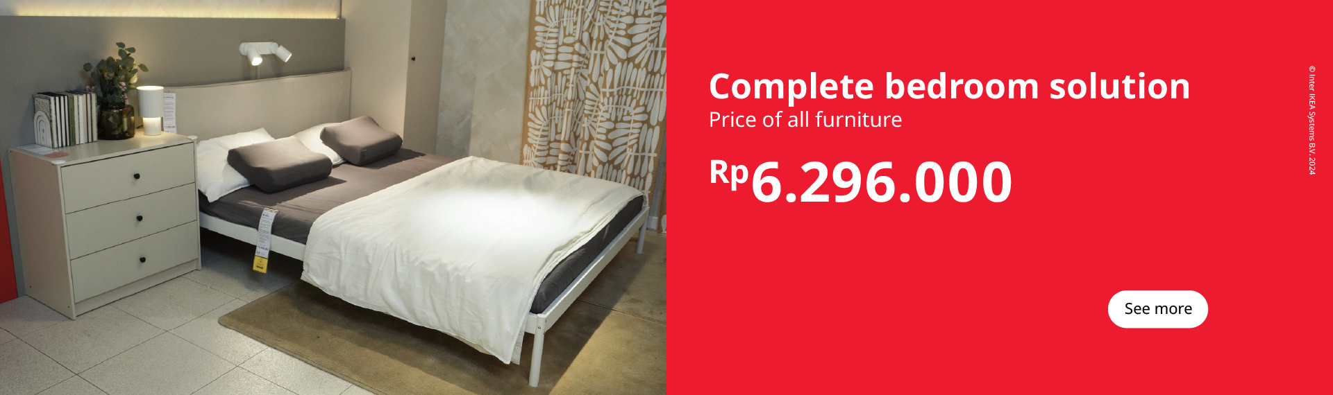 Tidur di ranjang dengan kenyamanan yang berkualitas selayaknya hotel. Terbuat dari material serat alami, HOMMELVIK adalah jenis tempat tidur bergaya kontinental yang dapat Anda letakkan di tengah ruang kamar Anda untuk menciptakan suasana tidur yang benar-benar menyenangkan. Suka membaca di tempat tidur? Gantung lampu di atas meja samping tempat tidur Anda untuk menciptakan kesan lantai bersih, tanpa kabel. Ini adalah solusi yang baik ketika Anda menempatkan tempat tidur di tengah ruangan.