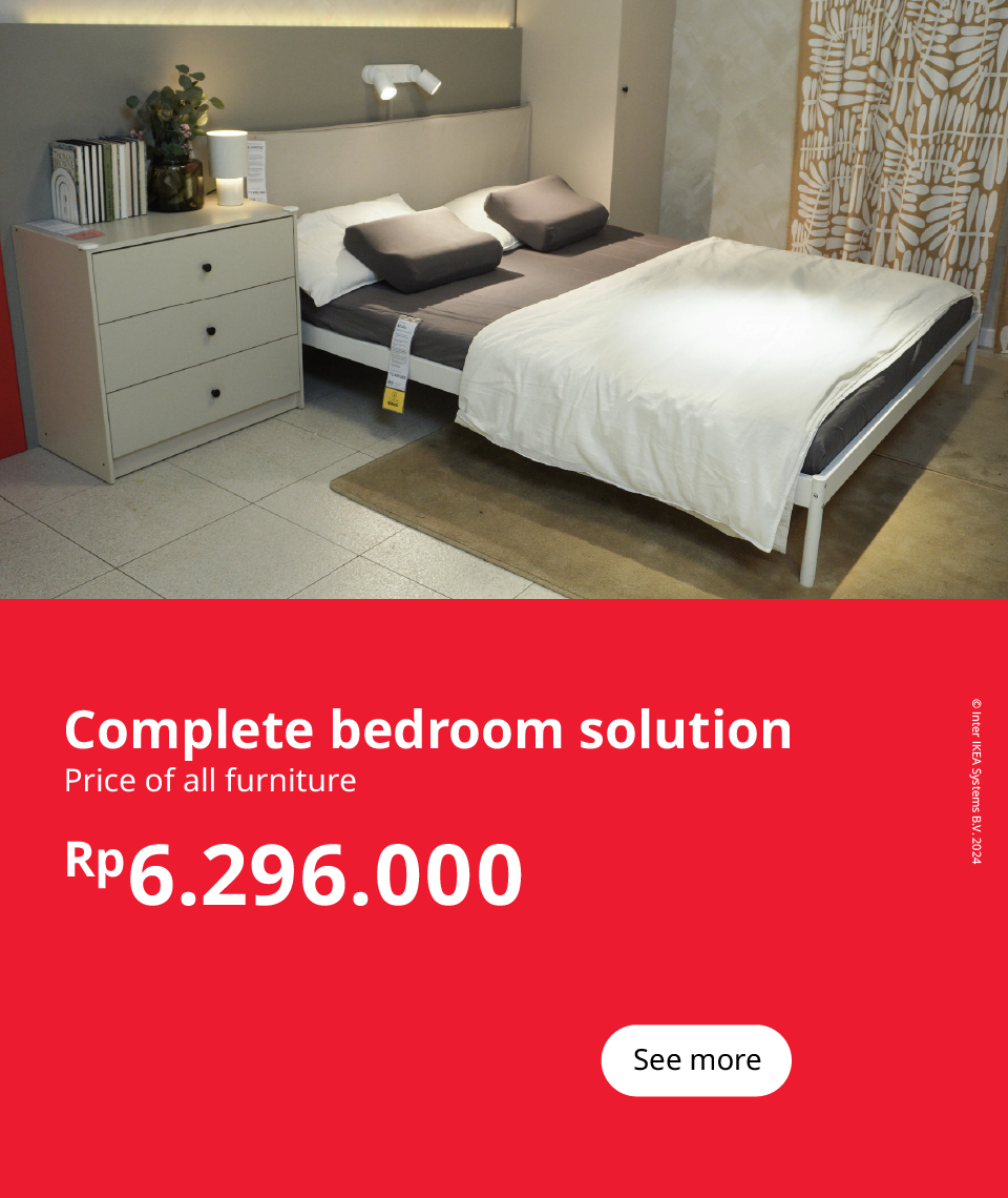Kamar tidur yang penuh gaya dan ramah lingkungan tentu membantu Anda untuk tidur lebih nyenyak. Pintu lemari pakaian terbuat dari kayu serta kertas foil daur ulang, dan seri BJÖRKSNÄS yang terbuat dari kayu solid kokoh, memadukan ide ramah lingkungan dengan tampilan yang memukau.
