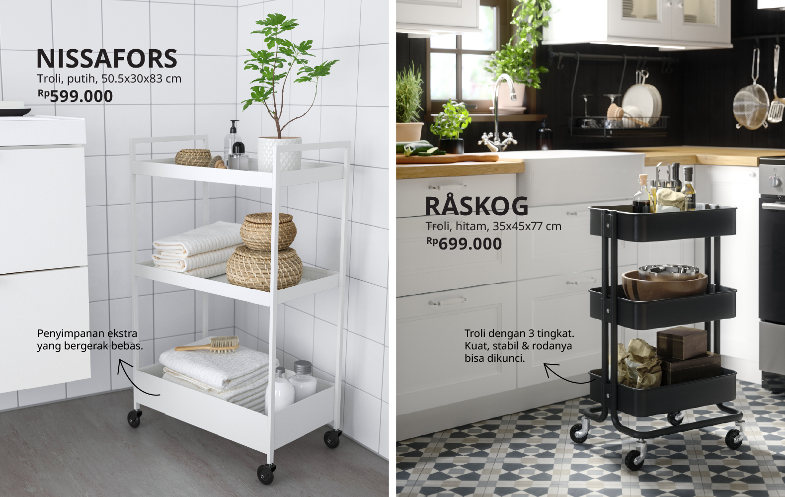 Troli serbaguna ini mudah dipindahkan dan cocok untuk ruang terkecil sekalipun, dari dapur hingga kamar mandi Anda.