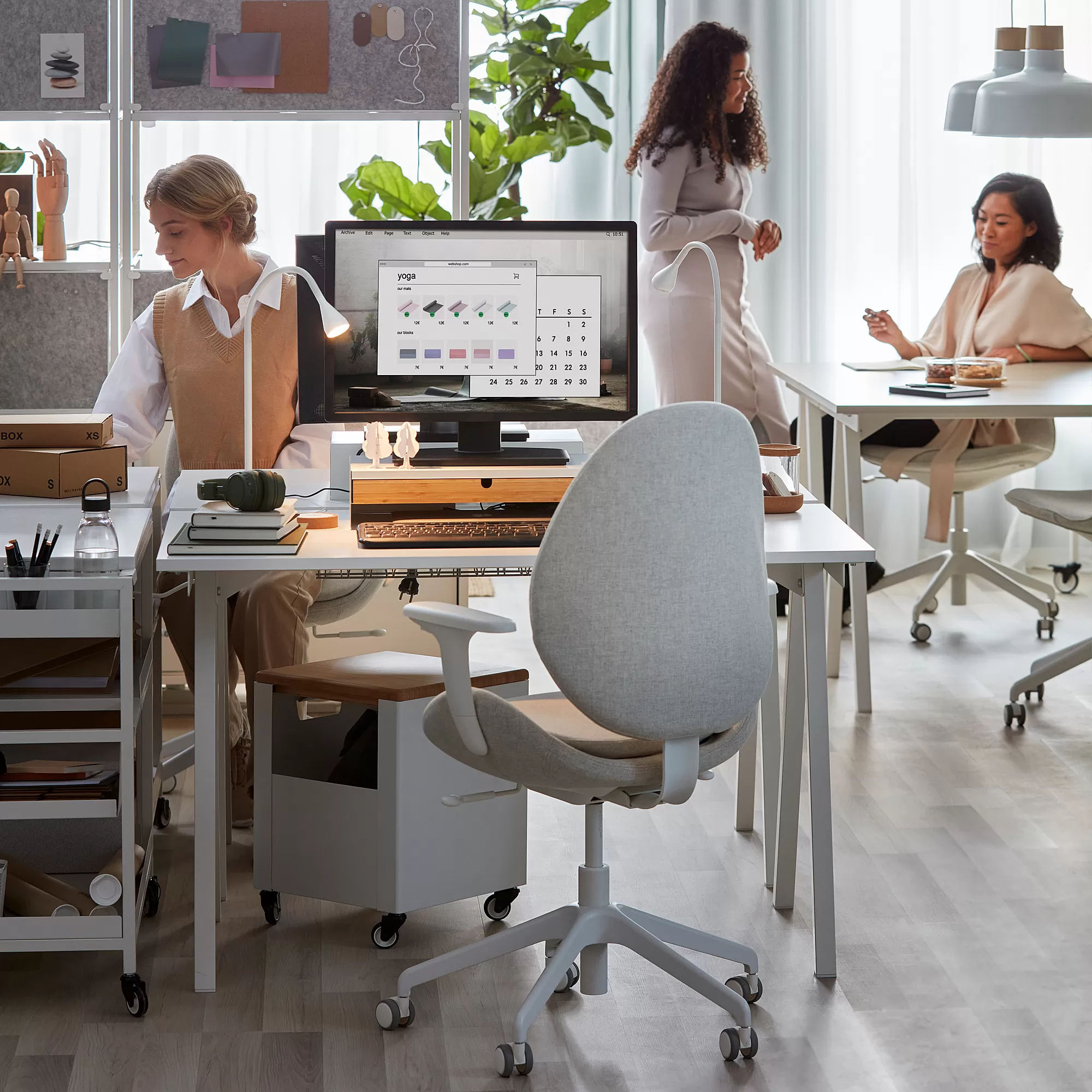 Meja TROTTEN sangat cocok dengan kursi kantor FLINTAN.