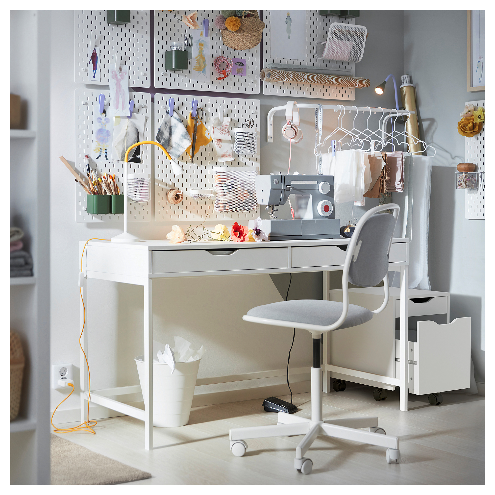 Meja ALEX memadukan penyimpanan cerdas dengan desain ramping. Anda akan menyukai laci built-in yang menjaga semuanya tetap rapi, meja dapur yang luas, dan manajemen kabel. Gaya minimalisnya cocok di sudut mana pun atau berdiri bebas di dalam ruangan.
