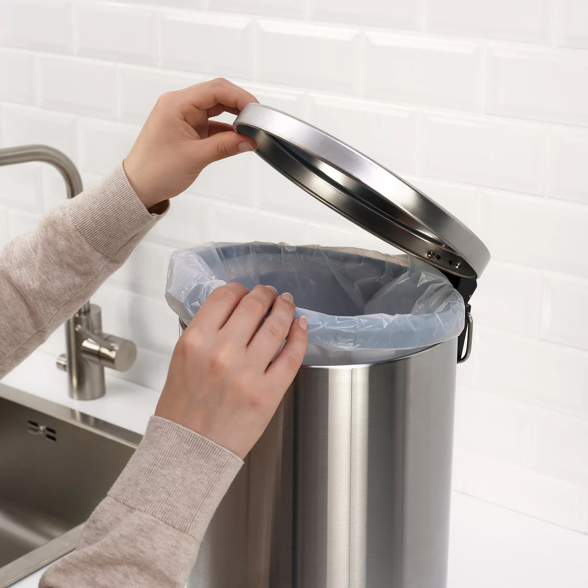 Tempat sampah pedal dengan garis bersih ini sama bagusnya di dapur seperti di kamar mandi dan pegangannya memudahkan untuk dipindahkan. Juga hadir dalam ukuran lebih kecil – sempurna jika Anda memilah sampah dan ingin beberapa tempat sampah yang serasi.
