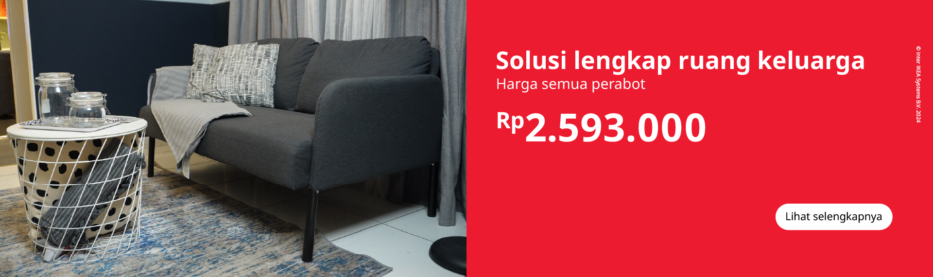 Ini adalah sebuah desain ruang tv keluarga yang digunakan untuk berkumpul dan bersantai. Sofa STOCKSUND menawarkan banyak ruang untuk duduk nyaman. Kombinasi penyimpanan BESTÅ tidak hanya berfungsi menata setiap barang, namun juga menghadirkan suasana klasik yang menenangkan.