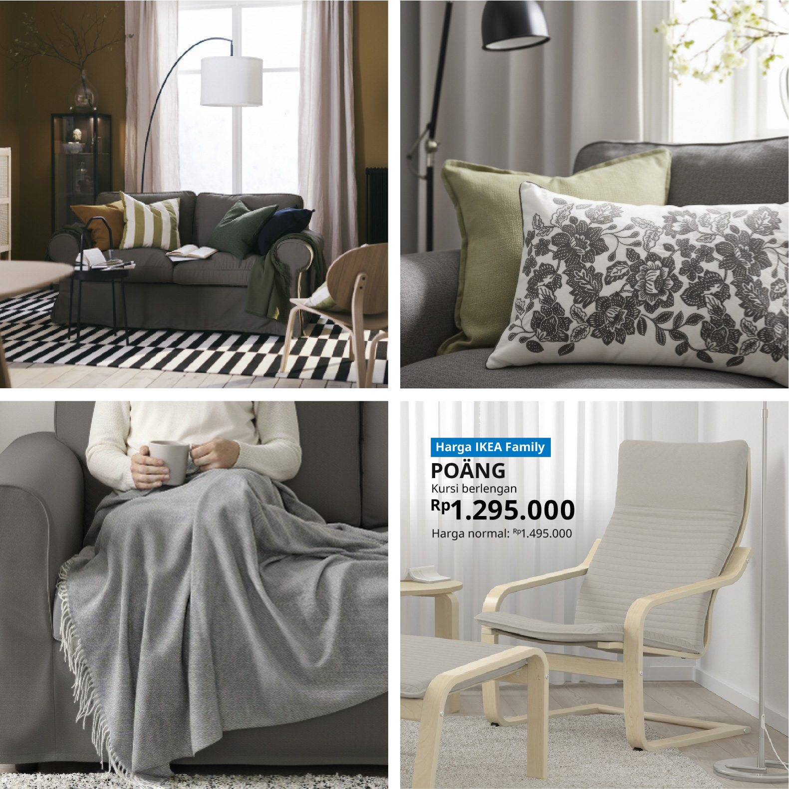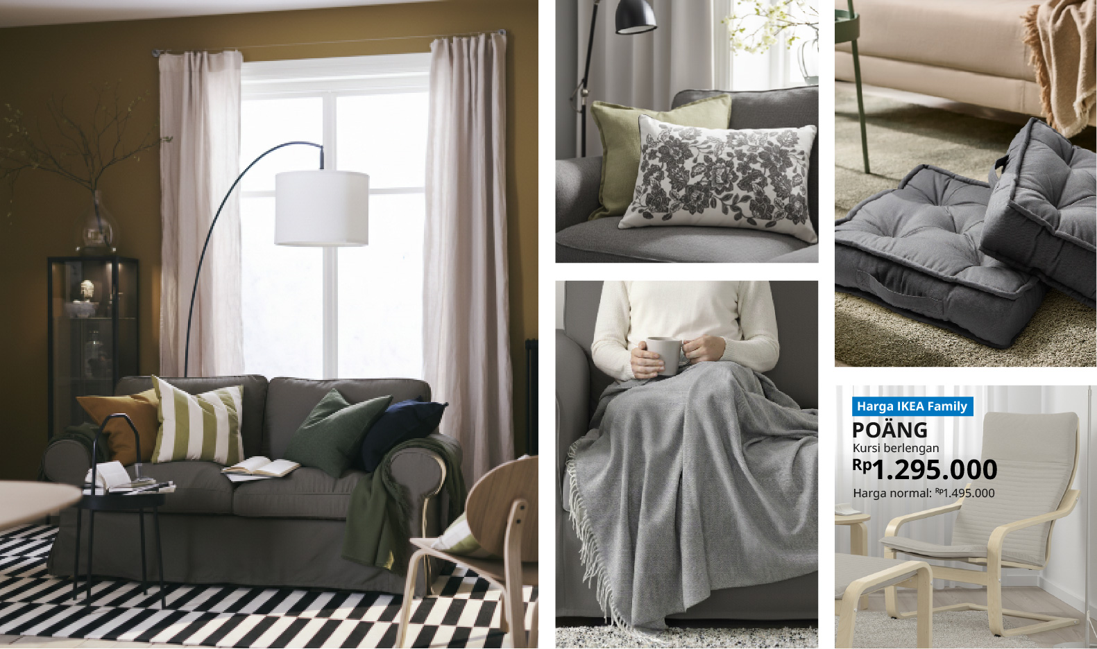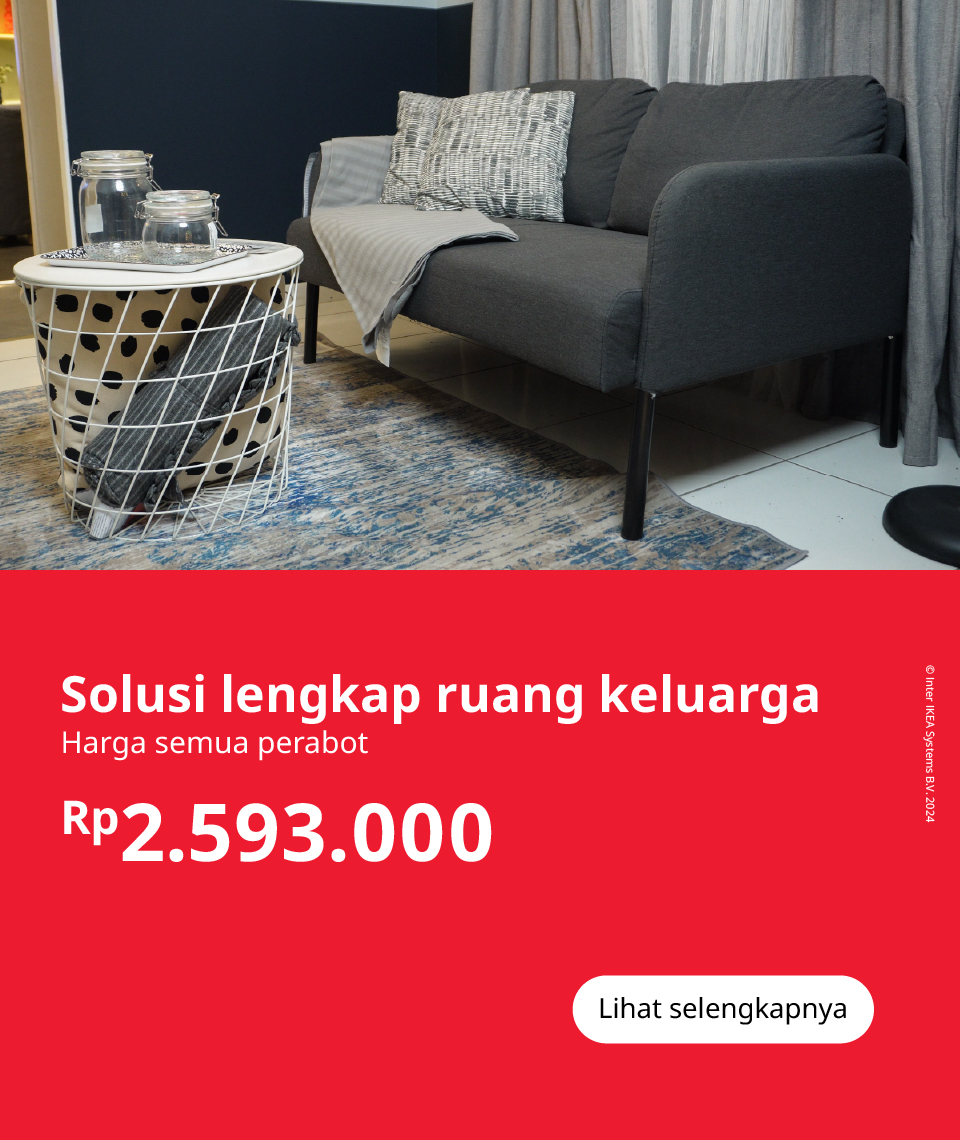 Material alami dan lapisan tekstur serta tekstil menciptakan sebuah ruang keluarga yang terasa ramah (Sementara ide-ide fleksibel dapat membuat ruangan ini fungsional!). Sofa STOCKSUND memiliki penutup sofa yang dapat dilepas dan dicuci dengan mesin cuci yang terbuat dari bahan katun, bahan terbarukan yang berasal dari sumber yang lebih berkelanjutan.