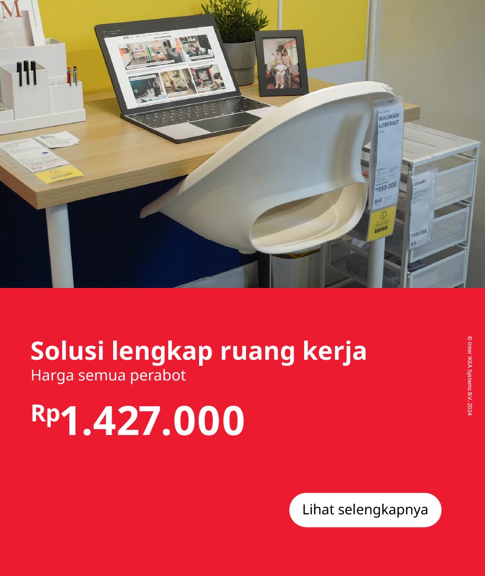 Desain yang Anda sukai dapat berjalan seiring dengan fleksibilitas dan kenyamanan yang Anda butuhkan. Meja ruang kerja LINNMON/ODDVALD berpadu sempurna dengan bermacam gaya, dan kursi putar dengan penyangga lumbar menawarkan kursi yang ergonomis.